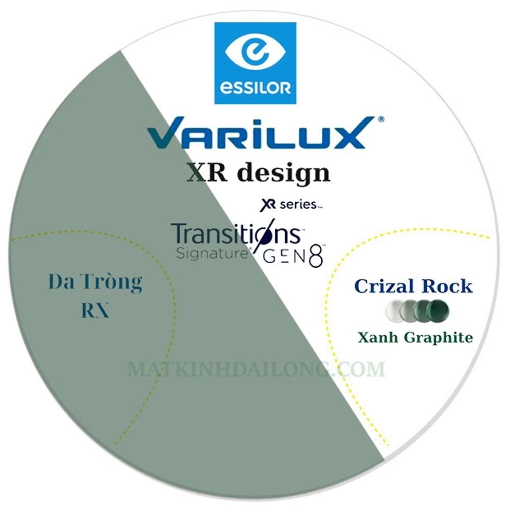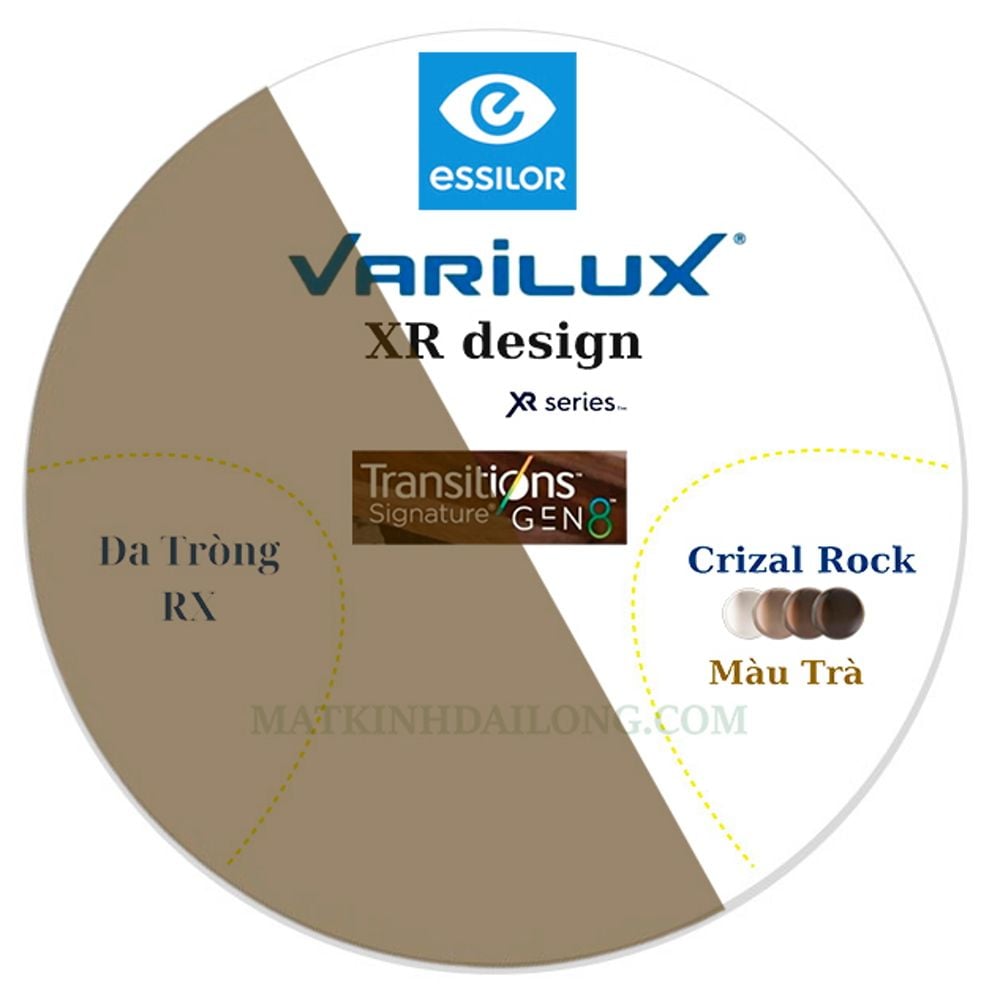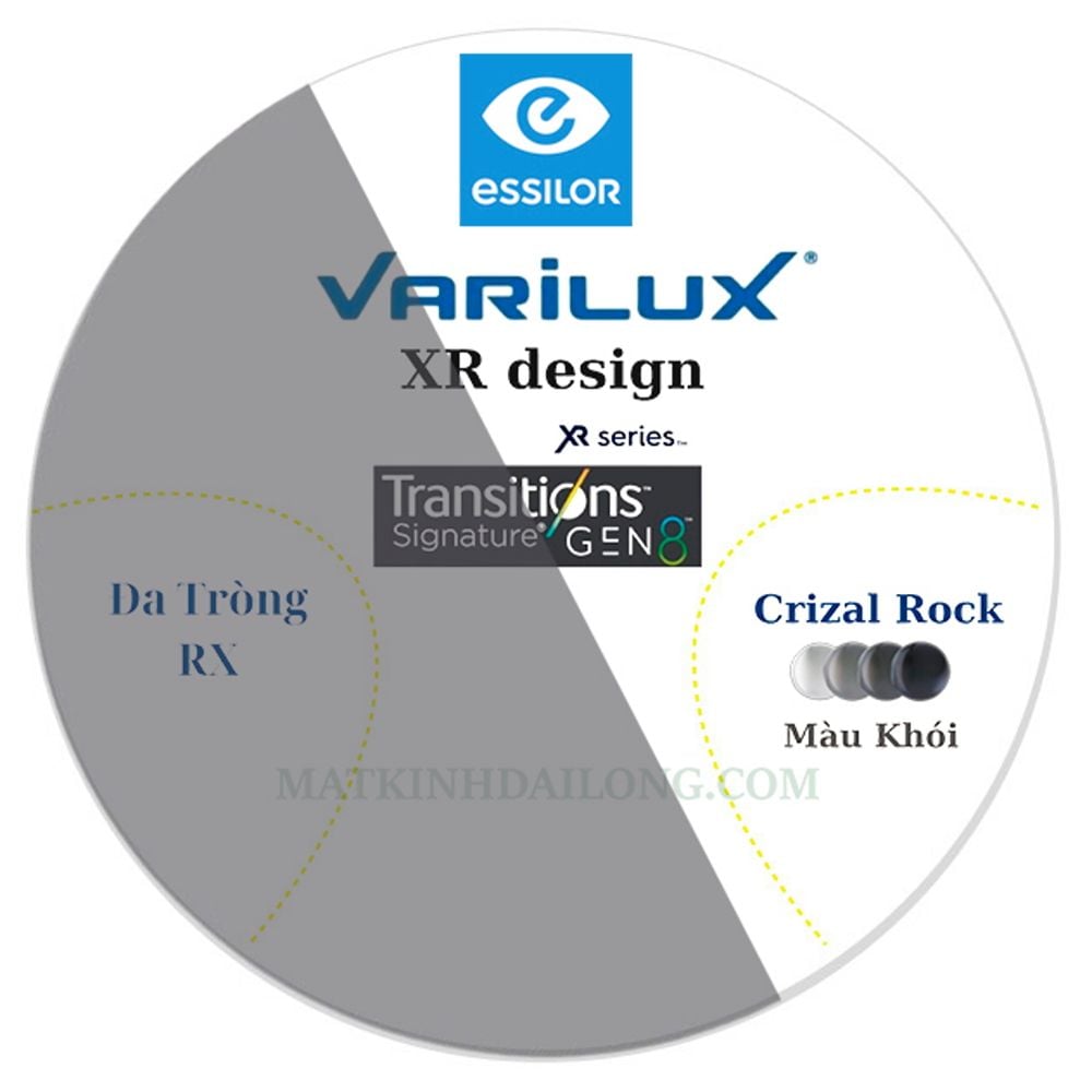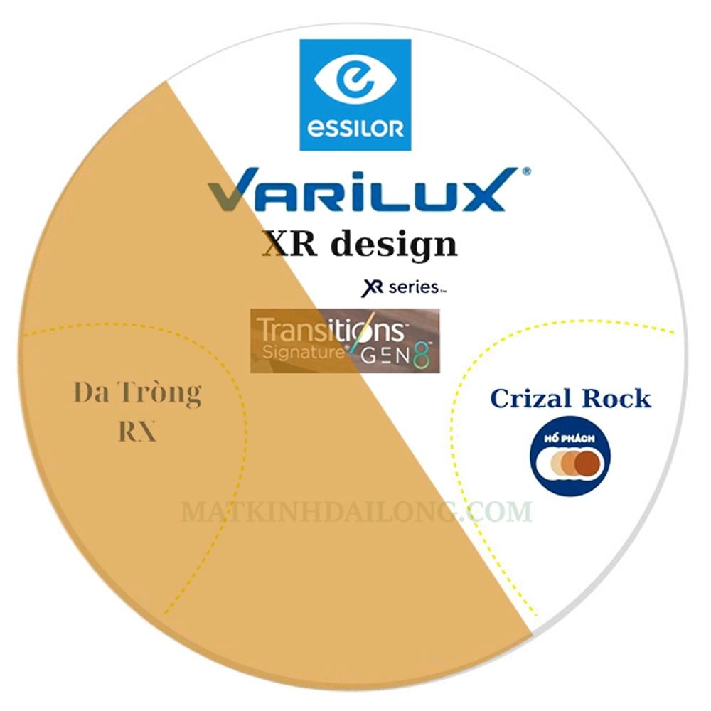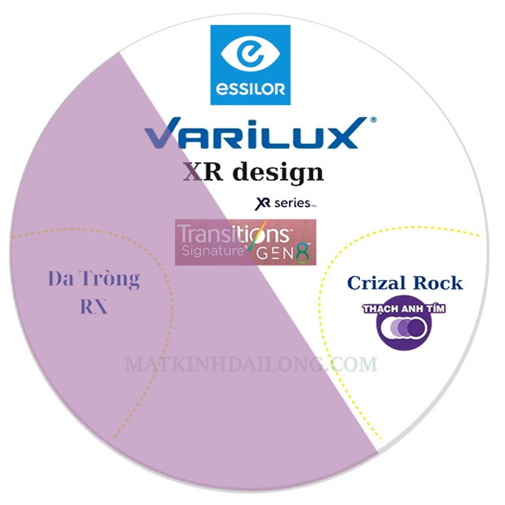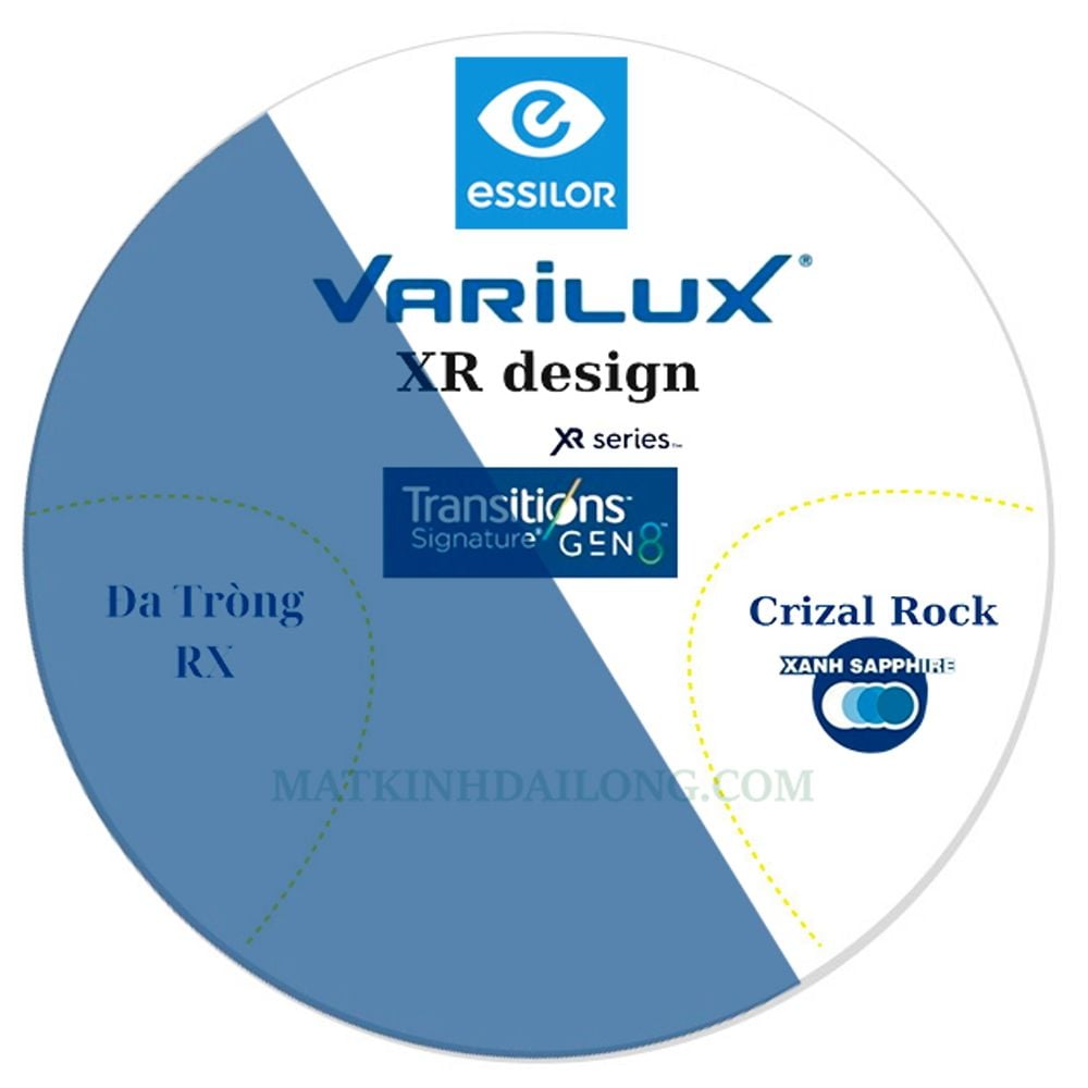 | Công nghệ | Varilux XR Design, Đổi màu, Crizal Rock, Blue Cut |