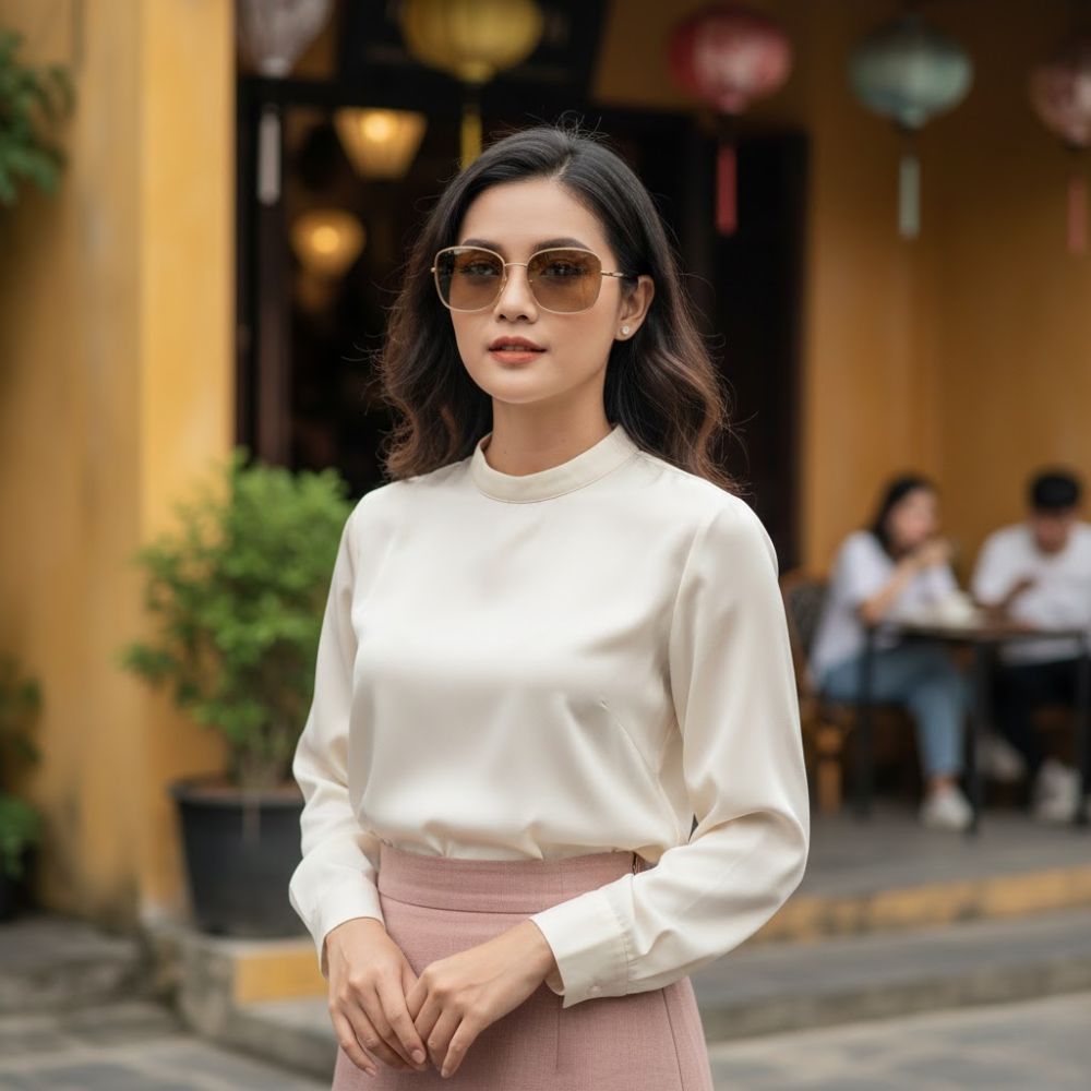- Công sở: Phối kính cùng áo sơ mi lụa, quần âu hoặc chân váy bút chì giúp tổng thể trang phục thêm phần chuyên nghiệp nhưng vẫn thời trang.