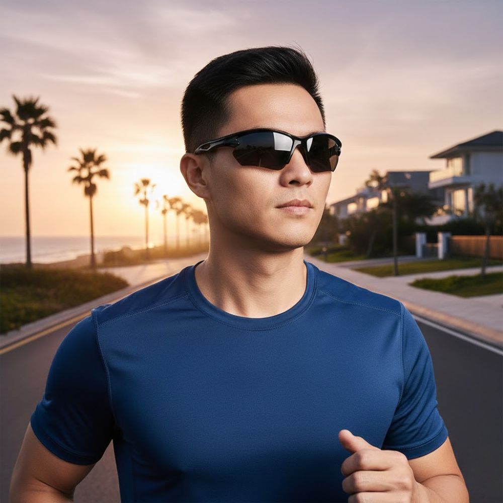- Thiết kế & kiểu dáng: Kiểu dáng thể thao ôm sát khuôn mặt giúp kính bám chắc khi vận động, hạn chế trượt rơi khi chạy bộ, đạp xe hay lái xe đường dài, đồng thời tạo cảm giác gọn gàng, nam tính và khỏe khoắn.