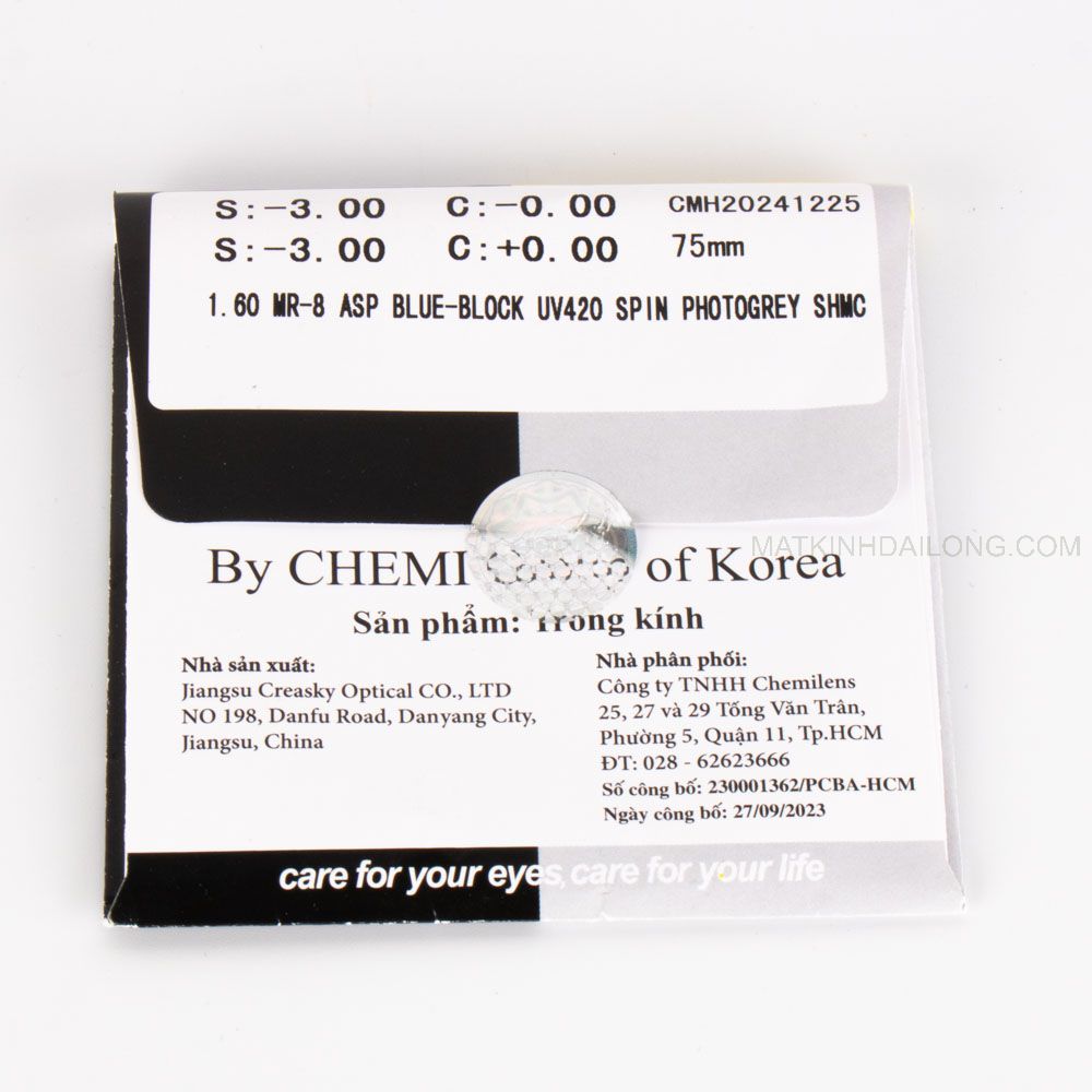 TRÒNG KÍNH _CHEMI ĐỔI MÀU 1.60 PHOTO GRAY BLUE UV